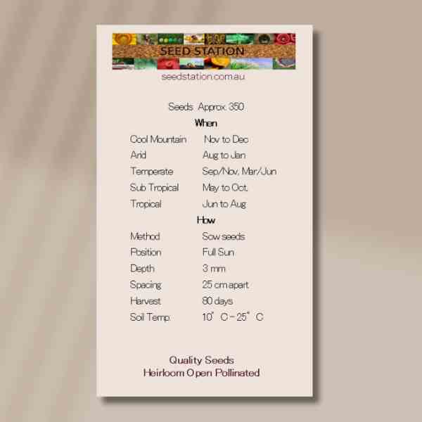 Method: Sow direct or seedlings