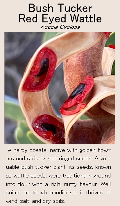 The Red Eyed Wattle is one of those plants that feels deeply connected to the Australian landscape. Found naturally along the coastal stretches of Western Australia and extending into South Australia, it is well adapted to life where conditions can be harsh and unforgiving. Wind, salt, and shifting sands are all part of its world, yet it stands firm and continues to grow, flower, and set seed year after year.