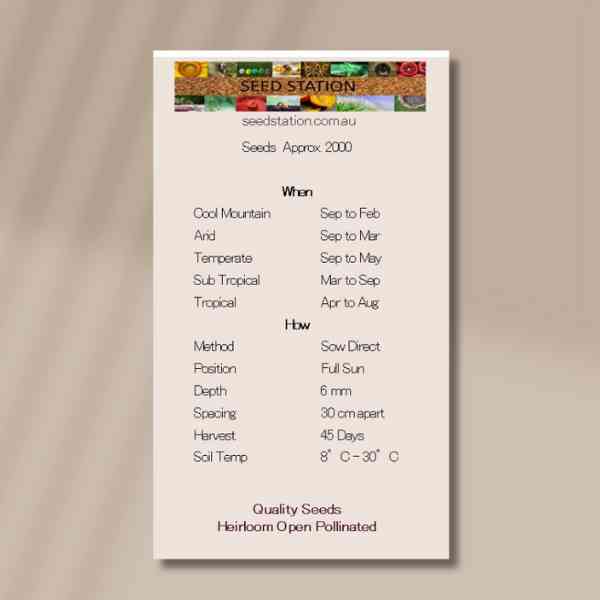 For direct sowing, prepare a fine, crumbly seed bed with compost worked through the soil. Sow the seed shallowly, cover lightly with fine soil or seed raising mix, and water gently. Keep the area evenly moist while the seed germinates. Once seedlings appear, thin them gradually so the remaining plants have enough space to form strong leaves and healthy rosettes. Thinnings can be eaten as microgreens or baby greens.