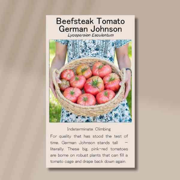 Tomato German Johnson with its large, rose-pink fruits and hefty vines, is not your average tomato. The fruits are broad-shouldered, somewhat flattened, and irregularly lobed, often showing those telltale pleats that home gardeners associate with rich, meaty texture and old-world flavour. The skin is thin but smooth, blushing with shades of dusky pink and deep rose-red. Each fruit can tip the scales at anywhere from 300 to 500 grams, though itโs not unusual to find one pushing past half a kilo if itโs had a good season.