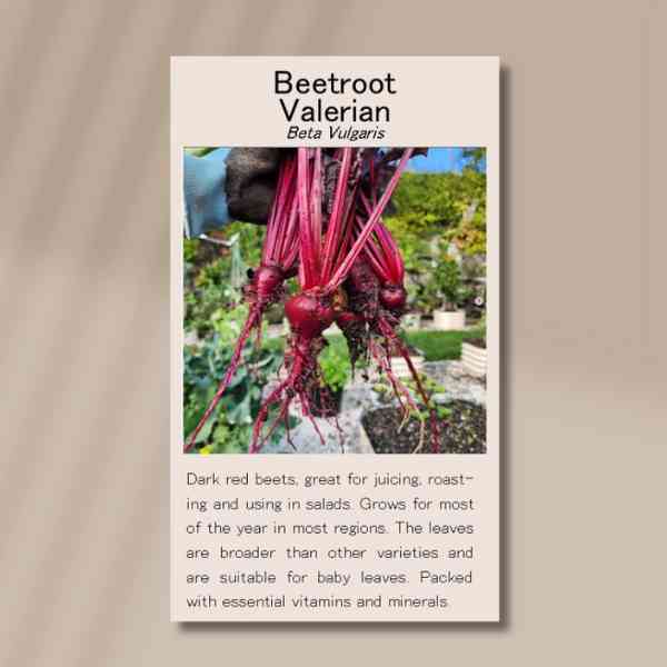 This dual purpose variety can be harvested at any stage of growth, use the leaves in salads or steamed like spinach, or the roots can be left to grow like any other beetroot.